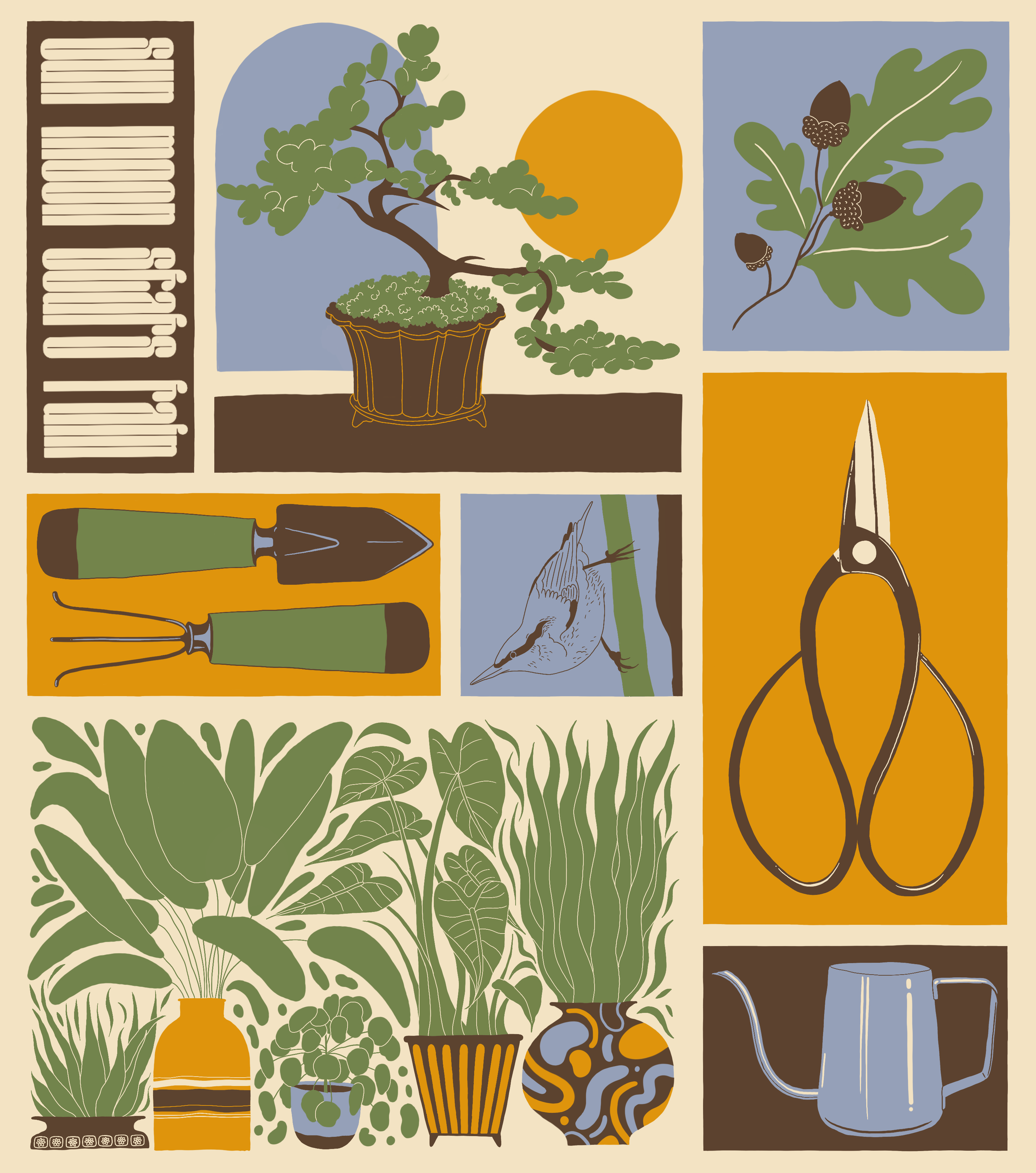With a restricted panel layout and a limited colour palette, I had to design within constraints and the project became a puzzle that I had to solve. I had all the elements that my recipient is interested in and had to fit them together as puzzle pieces to form a perfect composition; figuring out colours that represent my illustrations faithfully while also ensuring they don’t clash and are balanced throughout the piece. This was a fun challenge for me conceptually and illustratively.